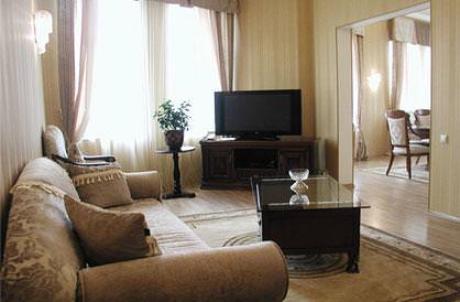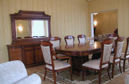 Элегантный и комфортабельный номер. В этом номере можно чувствовать себя как дома. Большая и уютная прихожая, с мягкими и диваном, гостиная с овальным столом создает атмосферу подлинного домашнего уюта.